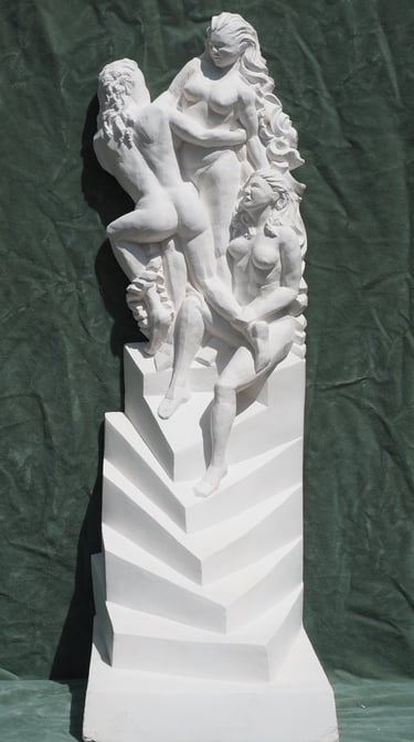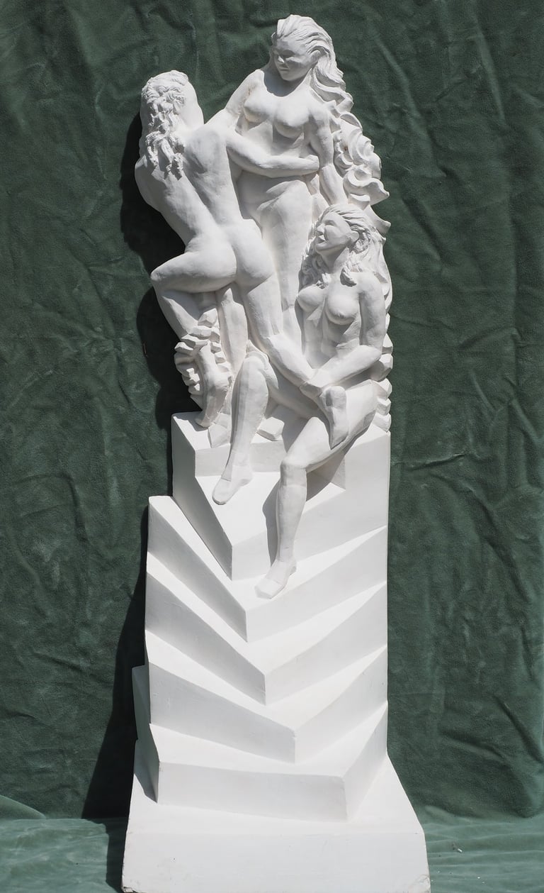 This sculpture was created for a private client who wanted a garden sculpture containing female nudes in a reinterpretation of the 3 Graces which also refers to a verse in Corinthians.
